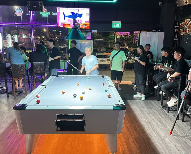 Enjoy lively entertainment featuring live music, a top-notch KTV sound system, EPL sports screenings, a 9 ft pool table, and Dartslive, all within a friendly and vibrant setting, conveniently located opposite Haw Paw Villa MRT.